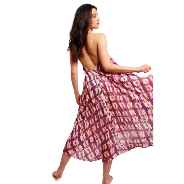 Robe longue dos nu violette OHARA KASMIRAVO de la collection été Banana Moon Couture. Cette robe longue allie subtilement l’élégance grâce à sa coupe aérienne à l’esprit rock. Un vrai coup de cÅ“ur.